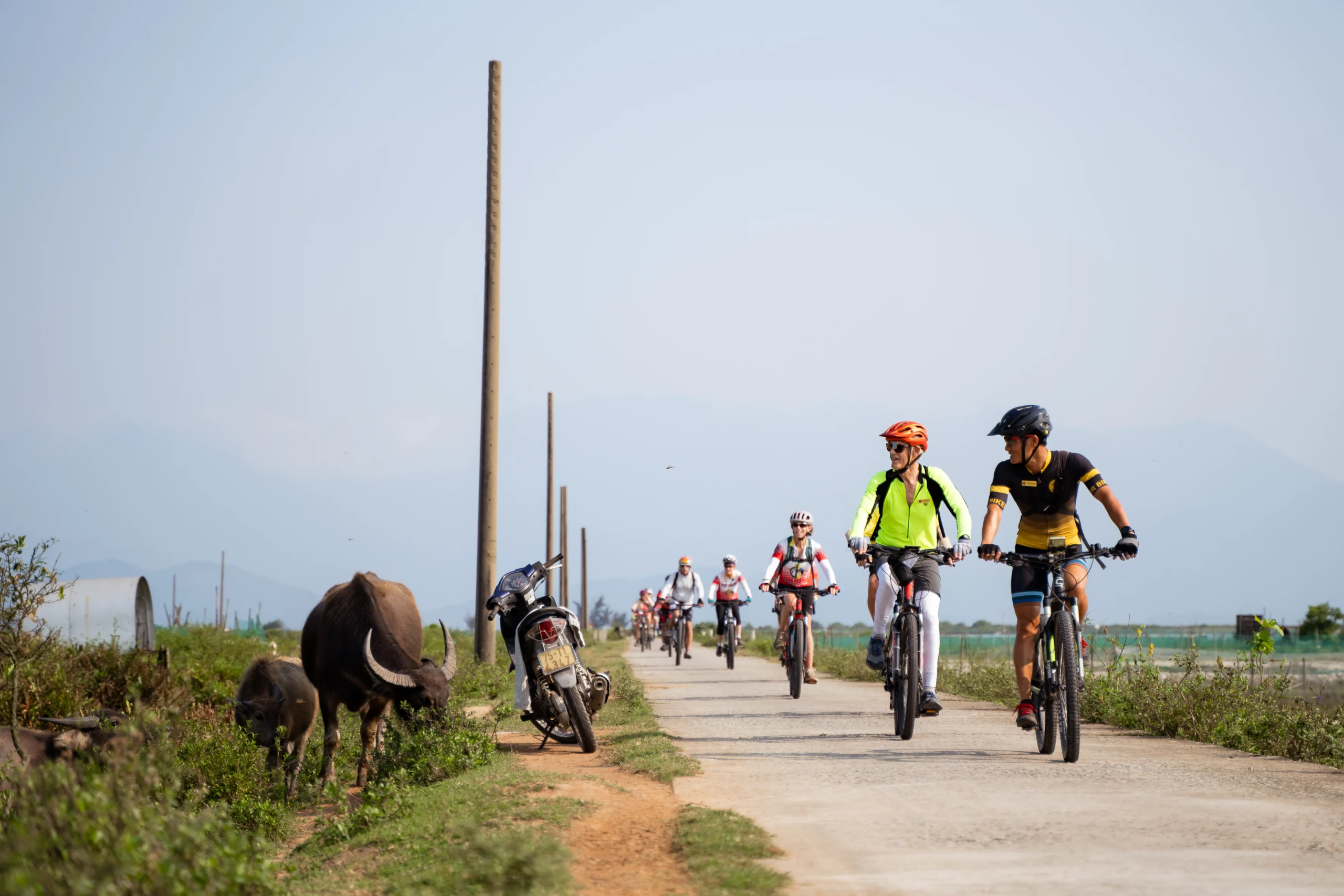 After My Lai, you will cycle along quiet village roads, past rice paddies, and through small fishing villages filled with colorful boats.