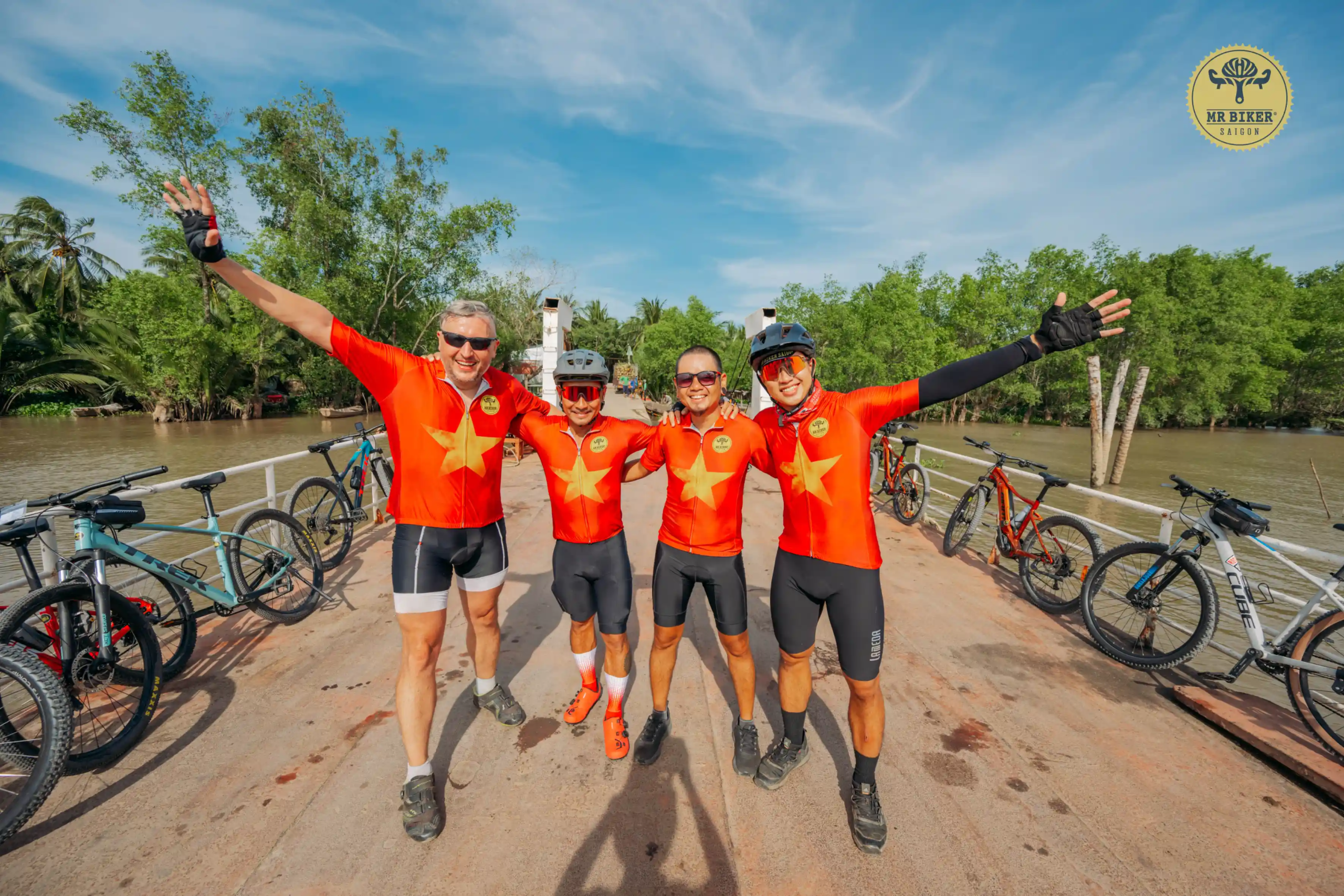 - Mr Biker Saigon Water Bottle, Handy Backpack, T-shirt and Mr Biker Saigon Cycling Jersey