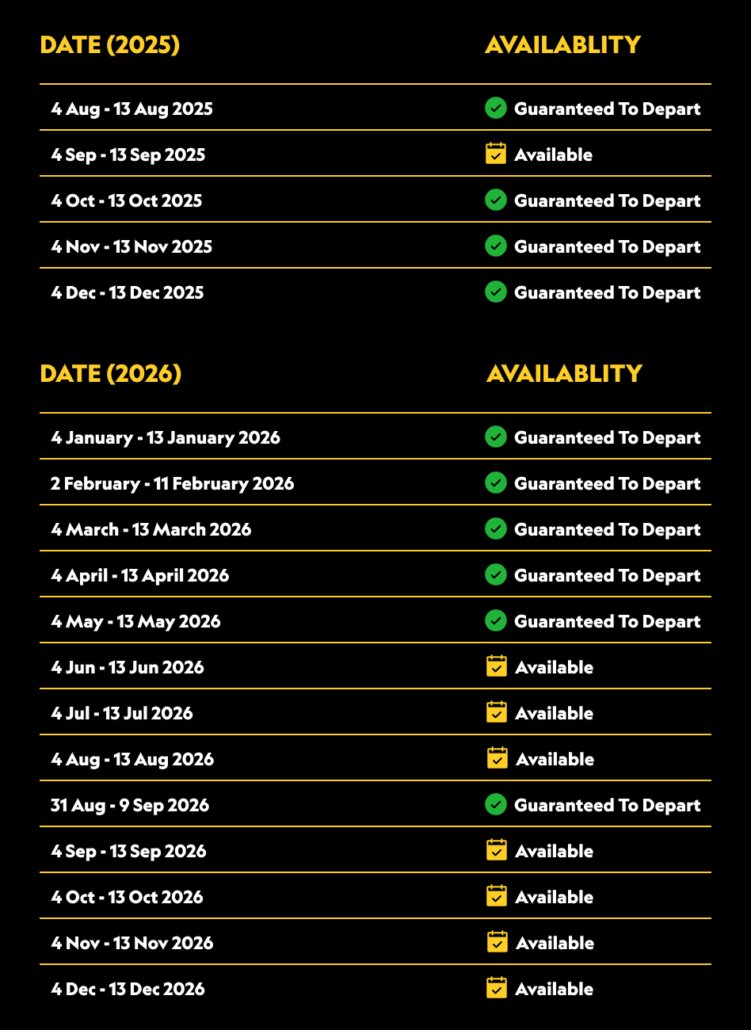 Meals Provided: Breakfast, Lunch, Farewell Dinner
