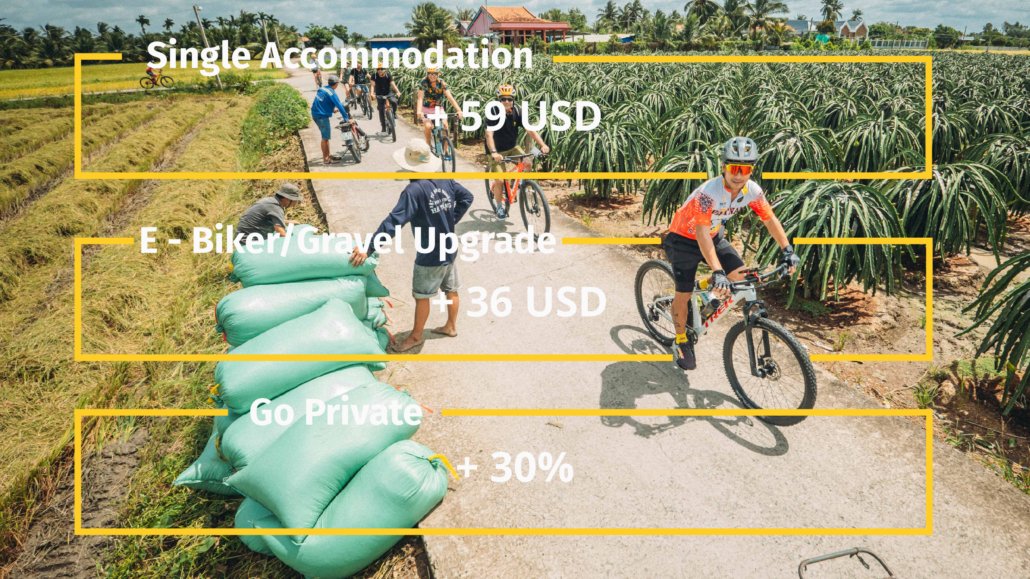 - Welcome Kits: Mr Biker Saigon Water Bottle, Handy Backpack and Mr Biker Saigon T-shirt