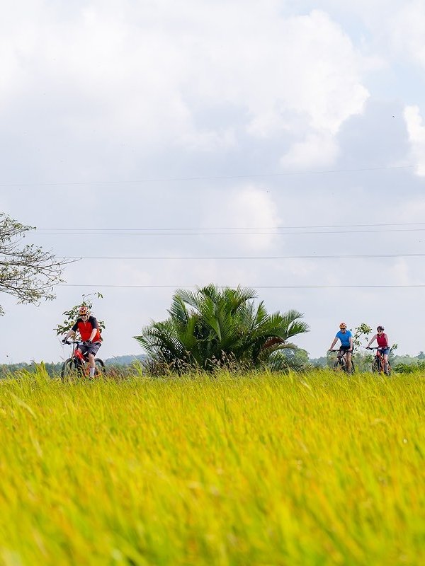 Set off on a 30km ride through narrow village byways, rice paddies, and rolling countryside. Pedal past golden fields (or lush green, depending on the season), tranquil lakes, and vast rubber plantations. Stop for a refreshing break with cold drinks and healthy snacks before continuing under the shade of towering trees.