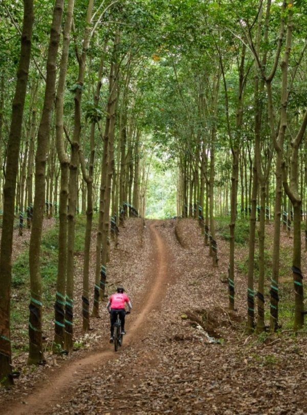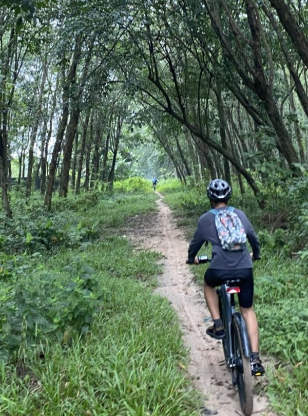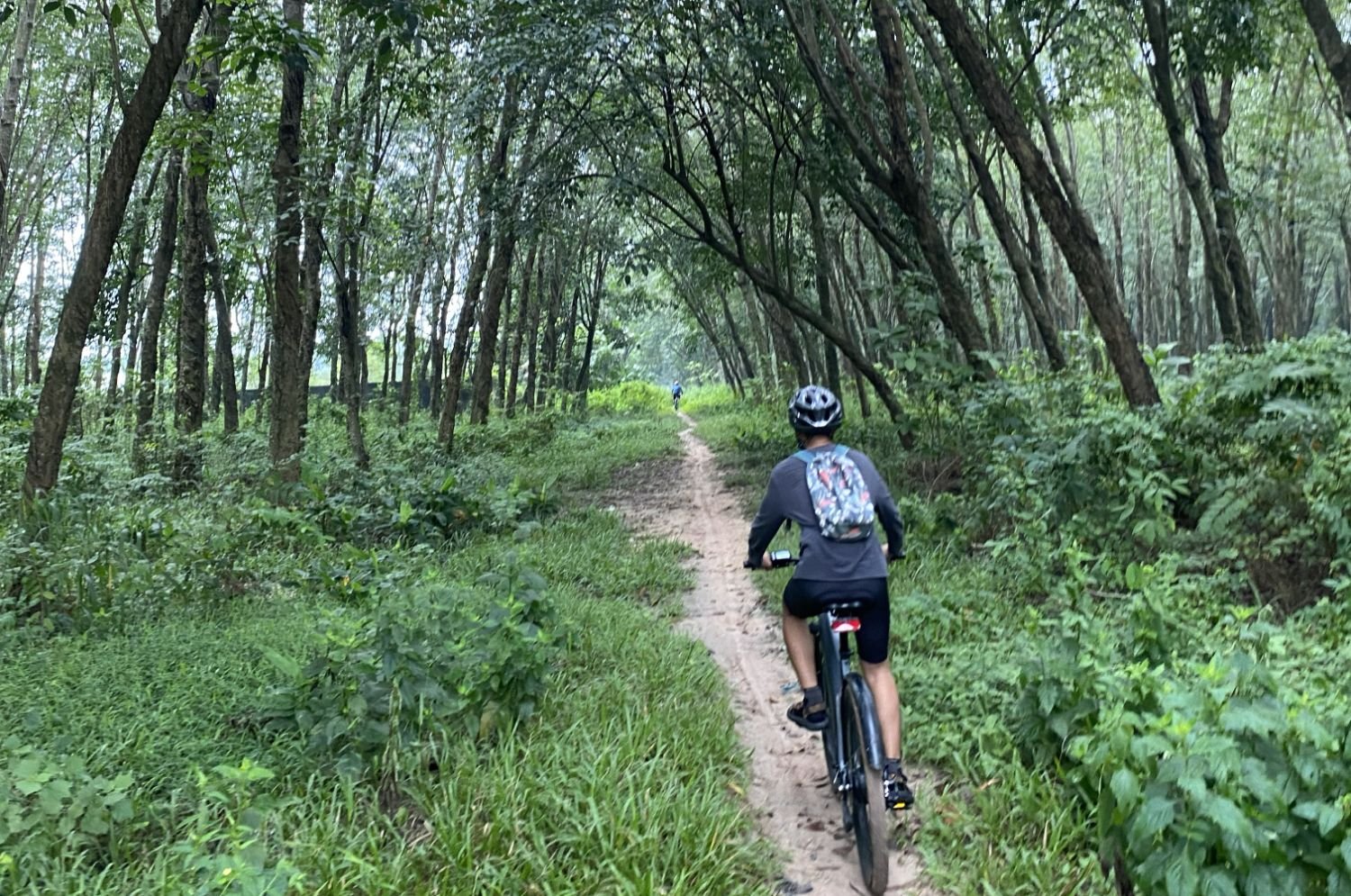 Setting off from the starting point, we will visit a handful of short segments through golden or verdant rice paddies (depending on the season) that are particularly narrow and elevated for irrigation purposes. After quickly leaving them behind, the terrain becomes rolling inn nature and an experience of the Countryside along the edge of the lake. Before our first nutrition, we rode through rubber plantations on our bicycles.