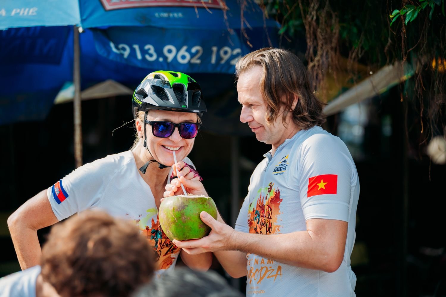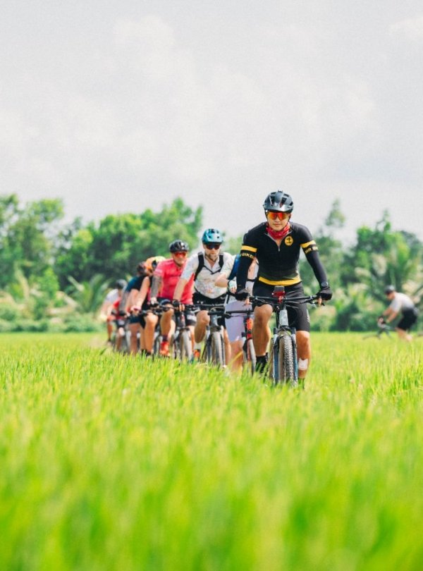 Riders get the choice to either cycle or van transfer the remaining distance to Long Xuyen City.