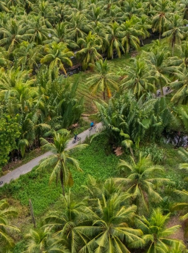 After breakfast, we will take a short boat trip to Coconut island. The cycle tracks today on the first 40 kms of the journey are unique gravel and concrete trails through coconut plantations and lemon grass fields. We will pass through charming Mekong Delta villages and cycle past traditional delta style homes that have been used as communal family residences for generations.