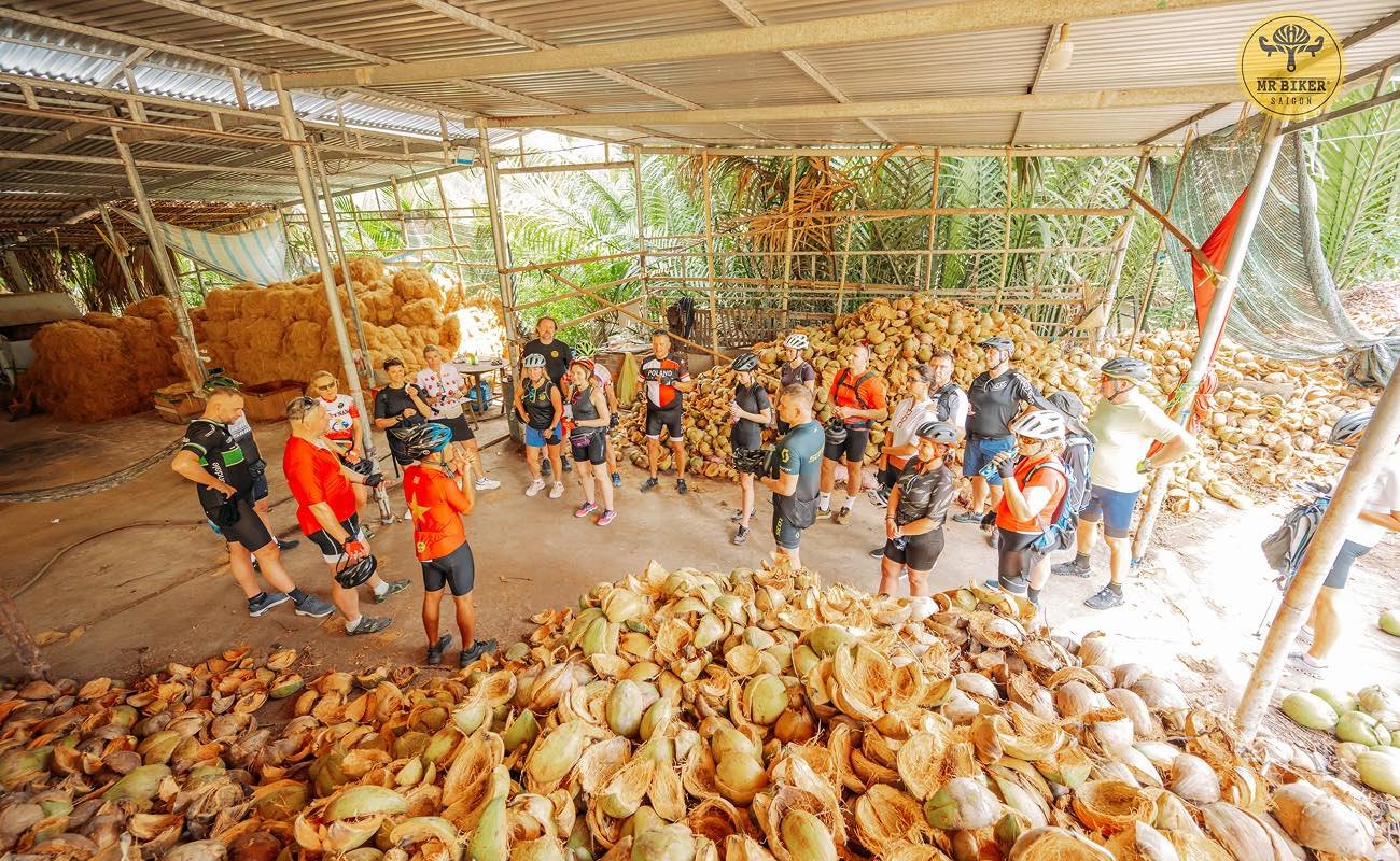 Riders will traverse numerous small canal bridges and admire the lush greenery of the area while riding beneath the shade of coconut trees. This view of the area’s agriculture will lead to a coconut byproducts factory, where we’ll take a short tour.