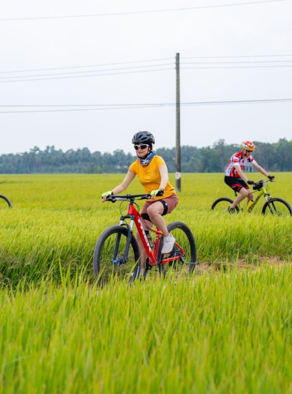 After that, we will spend the rest of the morning cycling through flat lands next to rice paddies and canals. This region is renowned for being the second largest producer of rice in Vietnam.