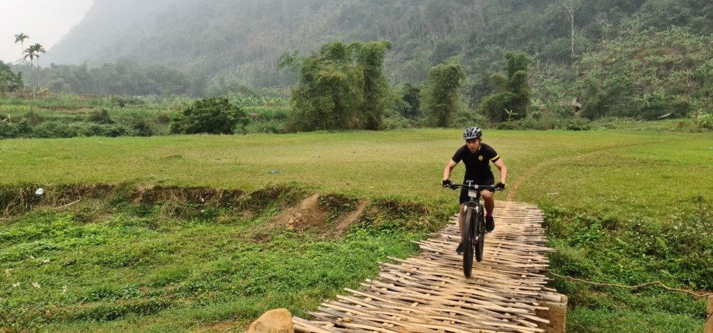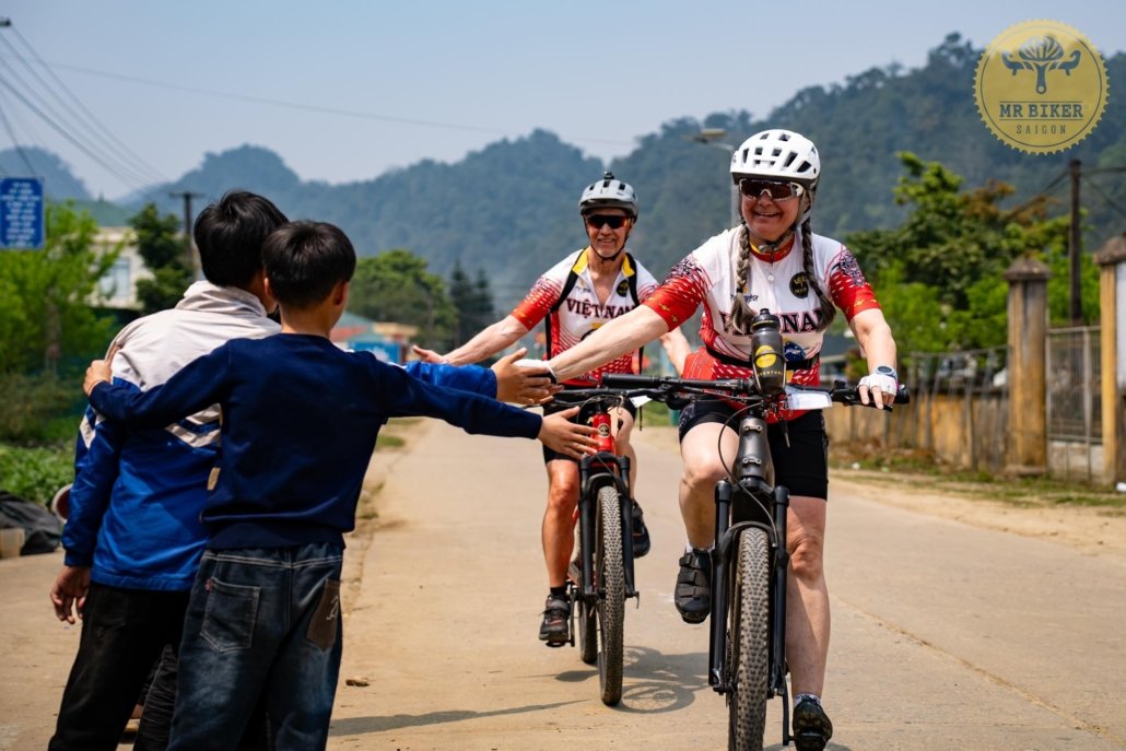 As the route approaches Mai Chau, the landscape opens into a broad valley surrounded by dramatic karst peaks and rice fields. The final stretch rolls easily into the heart of the valley, where traditional stilt houses and friendly local life create a welcoming atmosphere. You’ll spend the night at Mrs. Chung Homestay, a comfortable base to relax and ease into the rhythm of cycling through Vietnam’s northwest highlands.