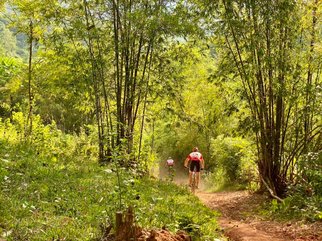 After breakfast in Mai Chau, you begin riding directly from your accommodation, following pre-loaded GPS tracks through the surrounding countryside. Leaving the valley floor, the route gradually climbs away from Mai Chau, transitioning from open farmland into quieter hill roads and village tracks.