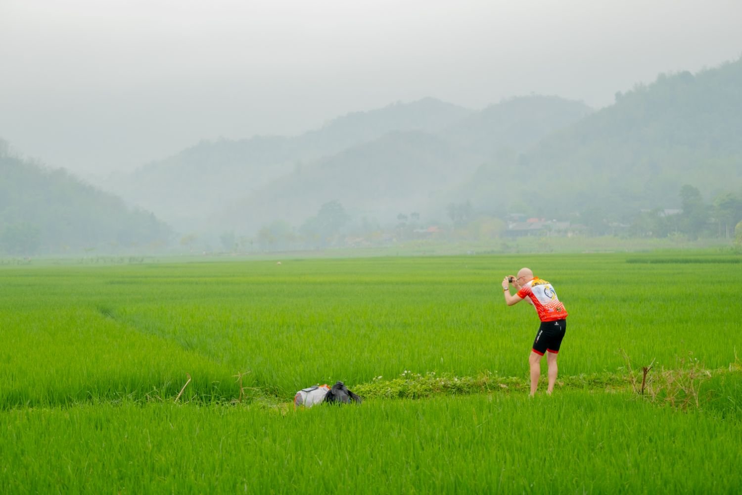 The ride out of Thach Quang begins on quiet rural roads, easing into the day with mostly flat terrain and a relaxed early pace. The route passes through small farming communities and open countryside, where the landscape feels settled and distinctly lowland compared to previous days.