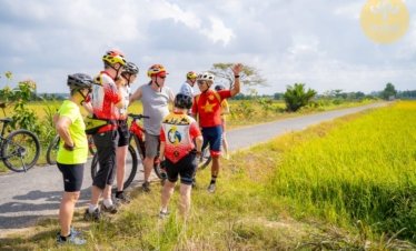 Beyond the park boundary, the terrain becomes flatter and more open as the route moves into Ninh Binh Province. The ride weaves through quiet villages, rice paddies, and narrow countryside lanes, with limestone karsts starting to rise abruptly from the fields. Elevation changes are minor, making this a smooth and efficient ride that allows time to take in the surroundings.