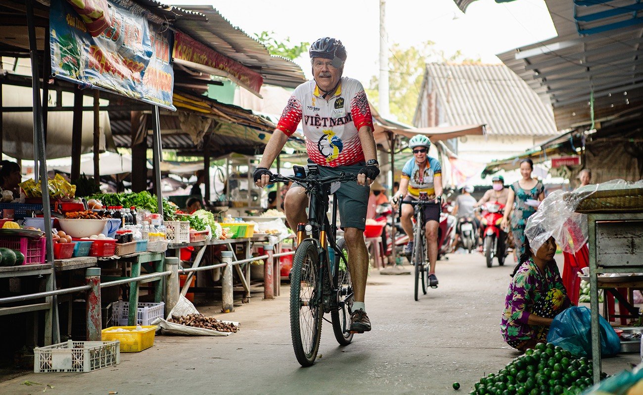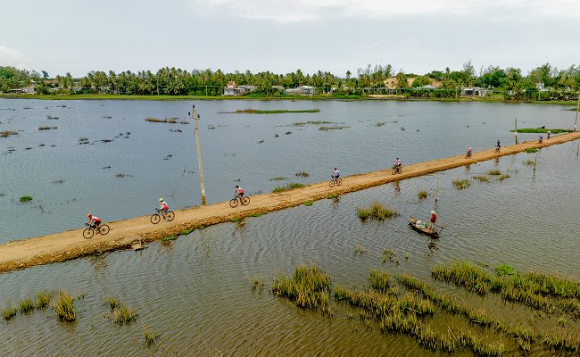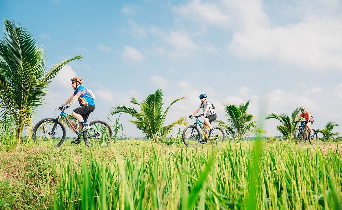 Cycle along quiet dirt paths weaving through lush rice paddies, coconut groves, and local villages, where friendly farmers greet you from the fields. The route is mostly flat, offering the perfect warm-up to southern Vietnam’s countryside charm.